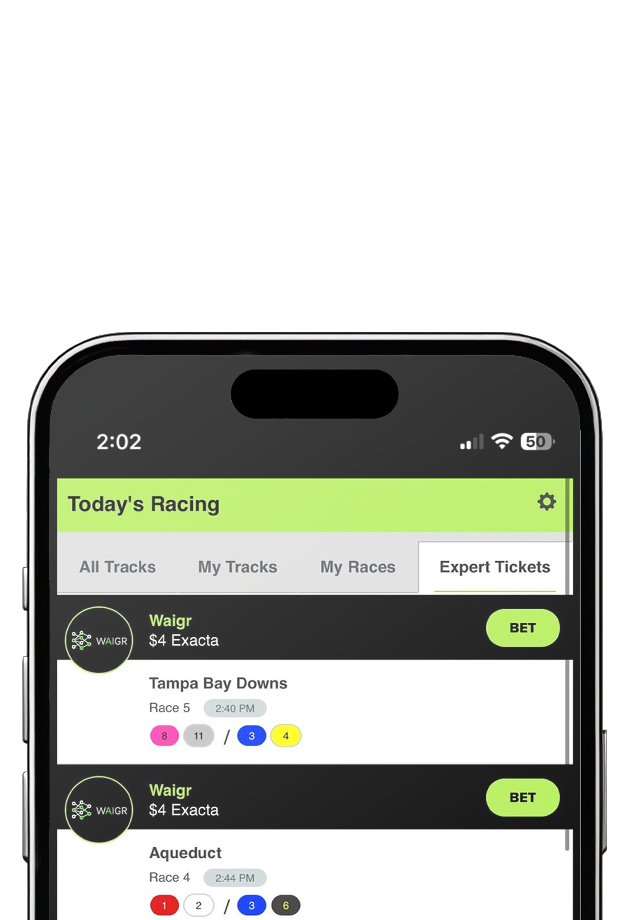 Waigr powers automated wagering solutions for NYRA Bets players with predictive models, personalized analytics, and lightning-fast execution. View Waiger Picks under Expert Picks and place your bets right in the app today.